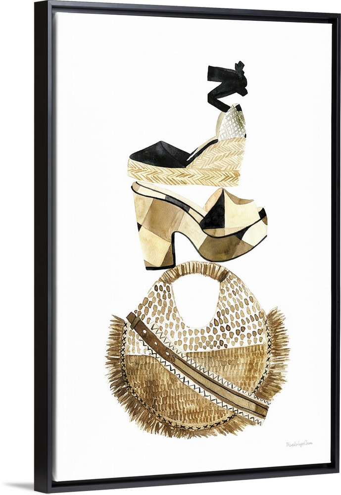 Art Glam Brown Wall Art Mercedes Lopez Charro Decorative Art Fashion And Beauty Purses and Bags Shoes Painting Watercolor