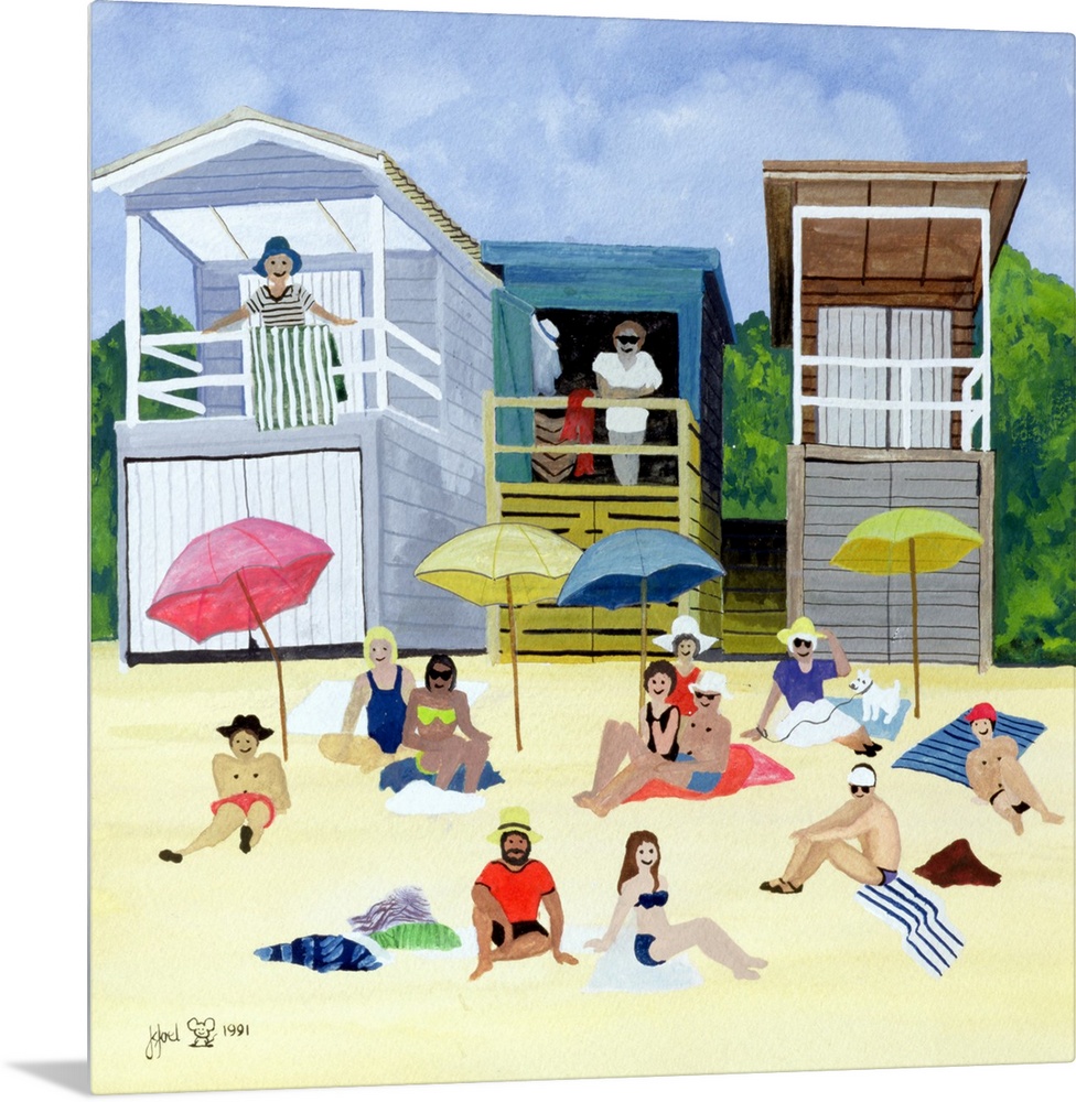 <p>Contemporary painting of people relaxing on the sandy beach.</p>