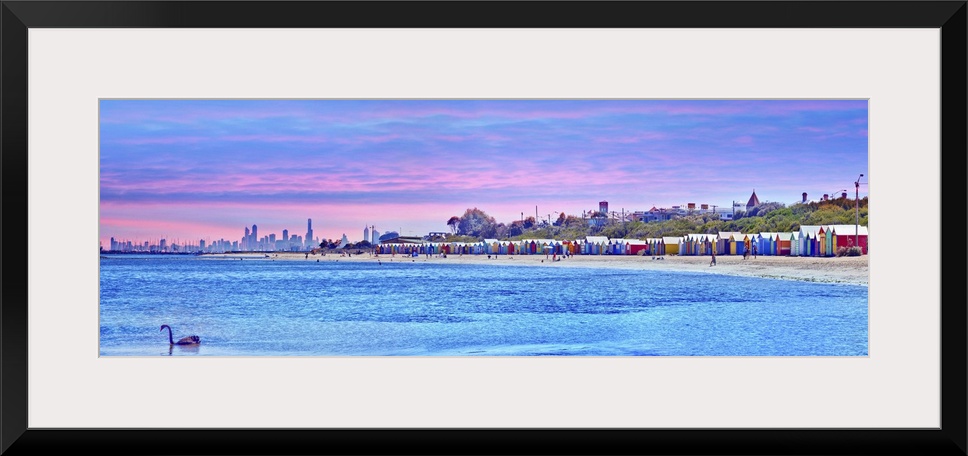 <p>Beach huts and tourists on the beach, Brighton the beach, Melbourne, Victoria, Australia.</p>