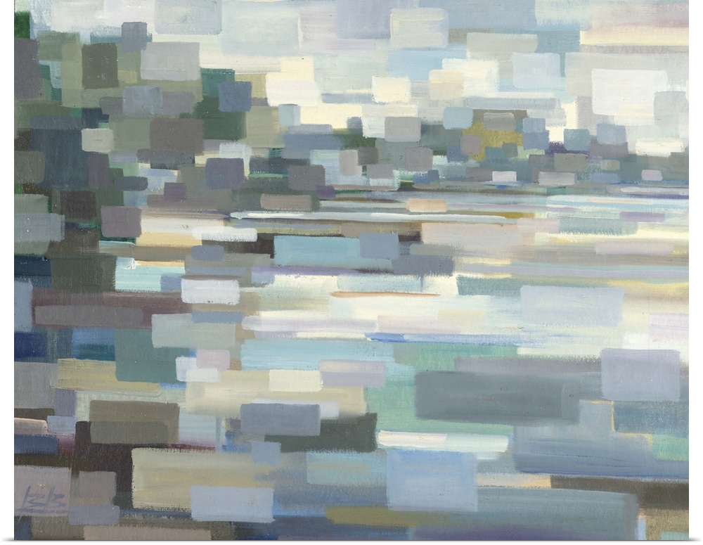 <p>Contemporary abstract painting using pale muted tones and geometric shapes.</p>