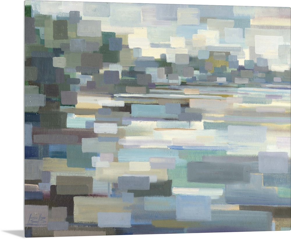 <p>Contemporary abstract painting using pale muted tones and geometric shapes.</p>