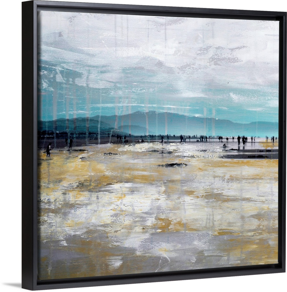 <p>Square mixed media artwork of people walking along a beach.</p>