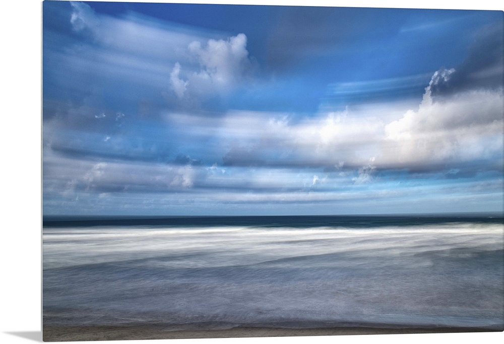<p>Photograph of storm clouds at beach blurred with long exposure.</p>