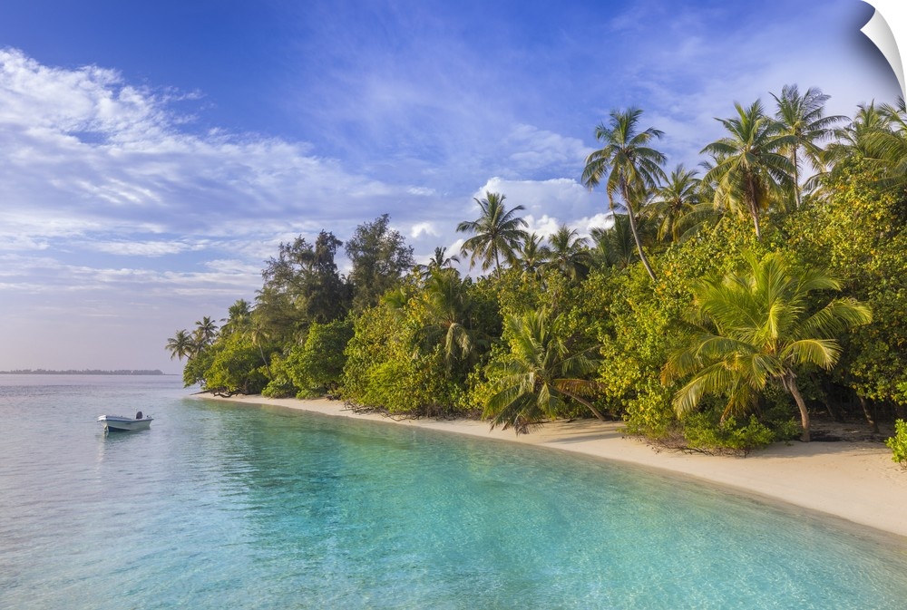 <p>Beach on a tropical island in the South Male Atoll, Maldives.</p>