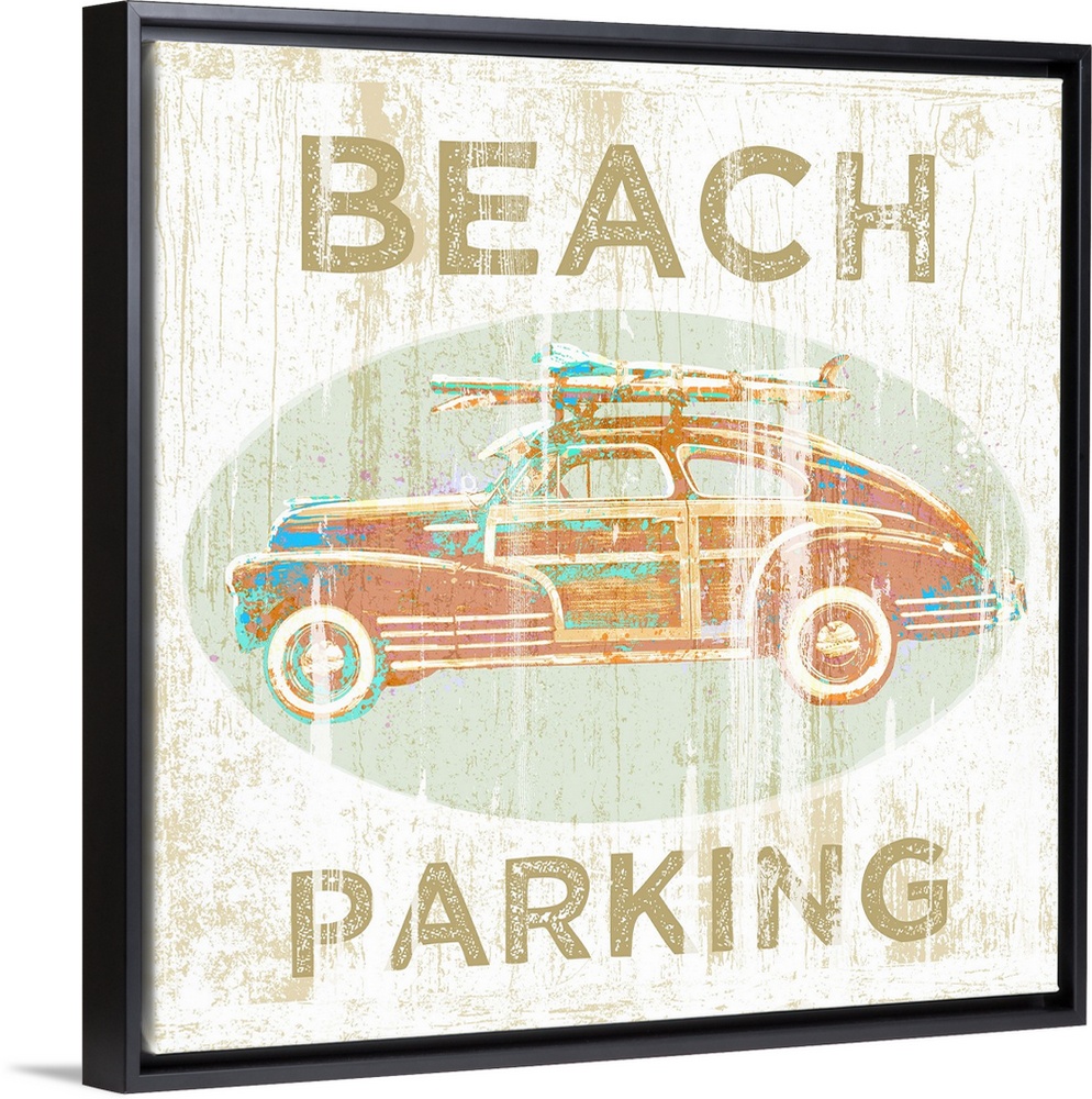 <p>A digital illustration of a vintage car with surfboards.</p>