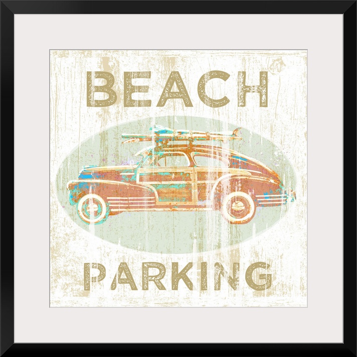 <p>A digital illustration of a vintage car with surfboards.</p>
