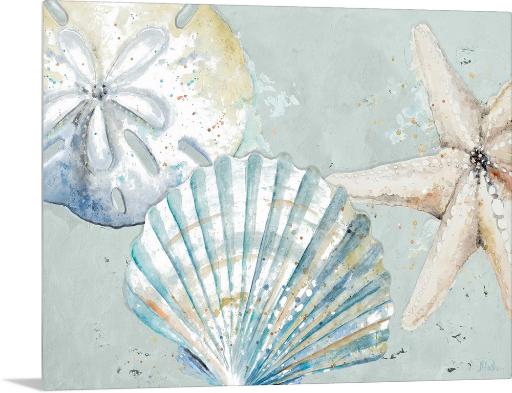 Art Bathroom Art Blue Wall Art Decorative Art Painting Patricia Pinto Shells Watercolor