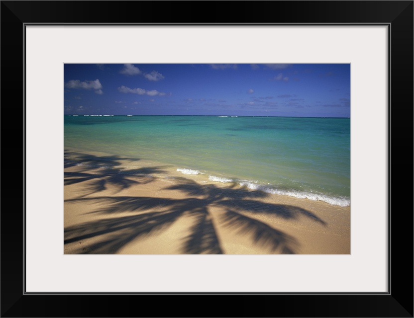 <p>Large photo printed on canvas of the shadows of big palm trees.</p>