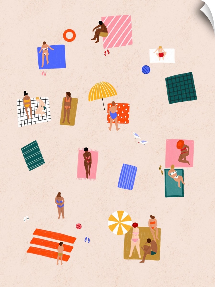 Art Coastal Contemporary Art Graphic Art Landscapes Beaches Bea Muller Multicolor Wall Art People