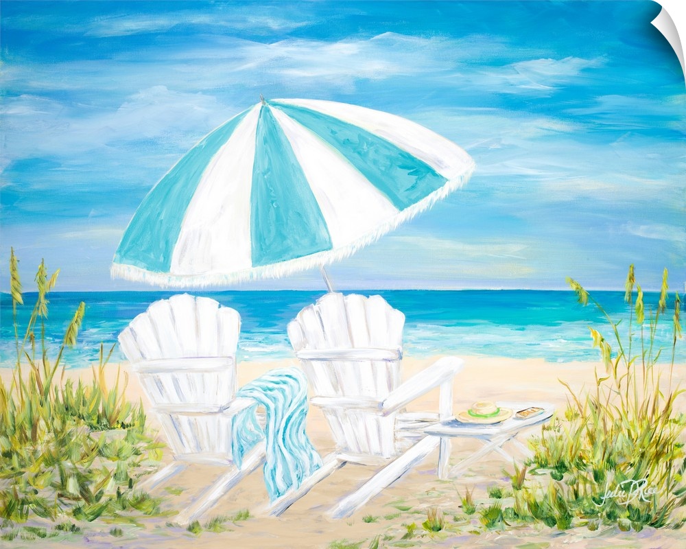 Umbrellas Art Beach House Décor Blue Wall Art Decorative Art Julie DeRice Seascapes Painting