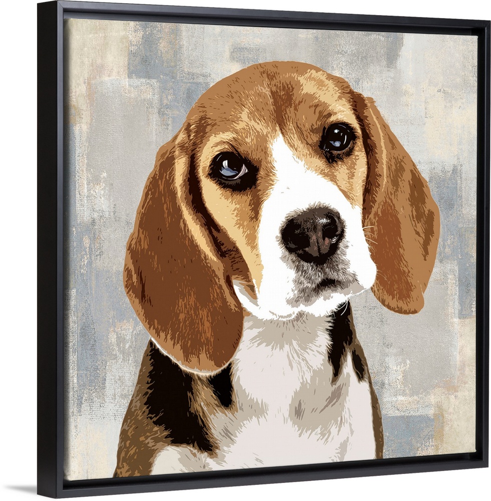 <p>Square decor with a portrait of a Beagle on a layered gray, blue, and tan background.</p>