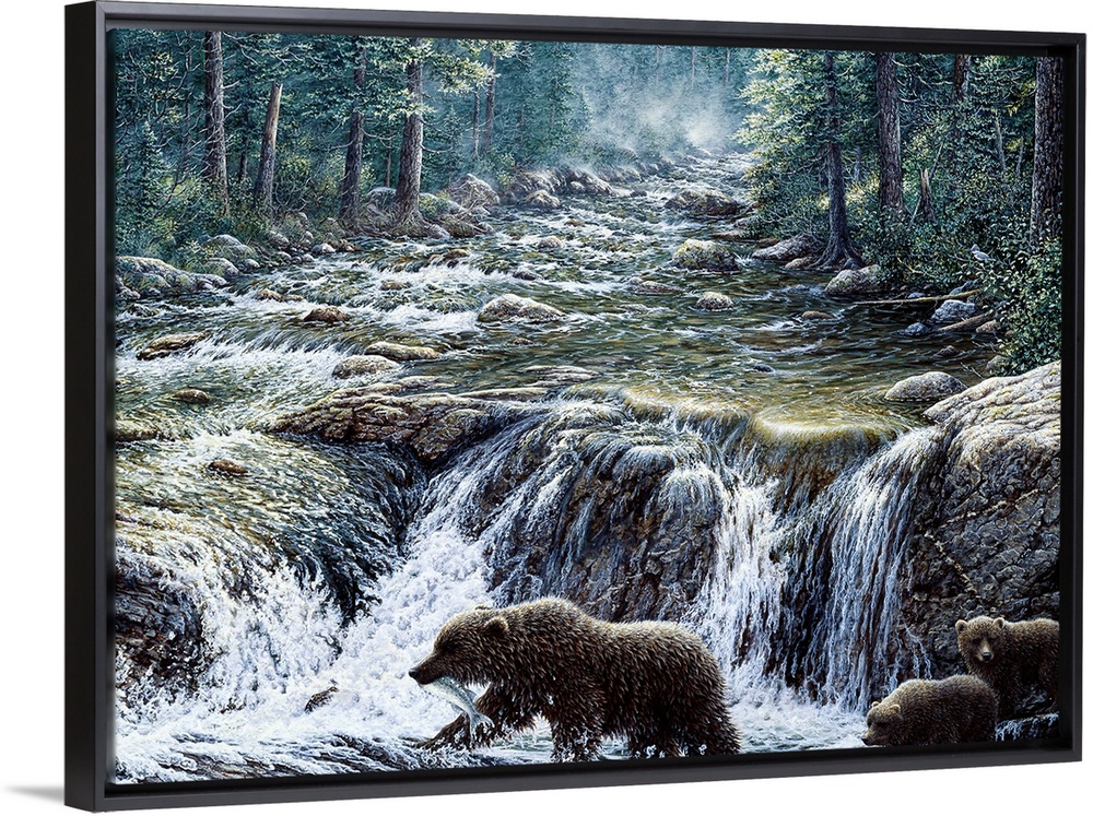 <p>MOTHER BEAR AND 2 CUBS CROSSING A STREAM</p>