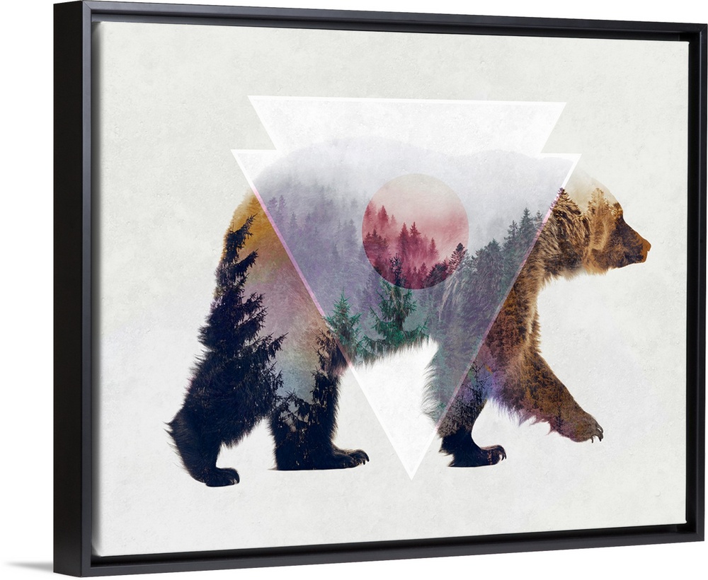 <p>Double exposure artwork of a brown bear and an evergreen forest.</p>