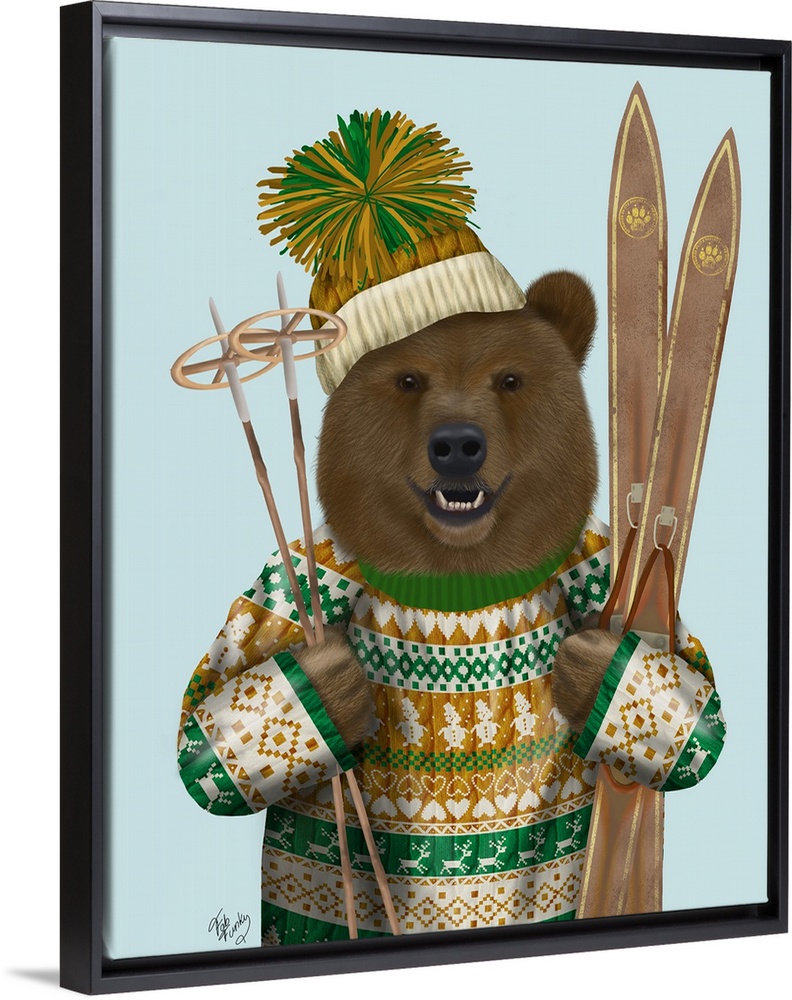 Art Blue Wall Art Decorative Art Fab Funky Graphic Art Painting Sports Skiing Surrealism Wildlife Bear
