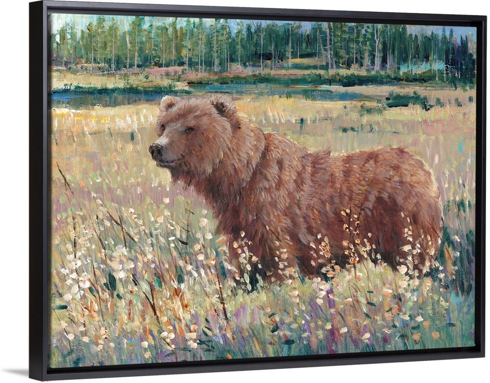 <p>Contemporary art print of a brown bear standing in a field of wildflowers.</p>