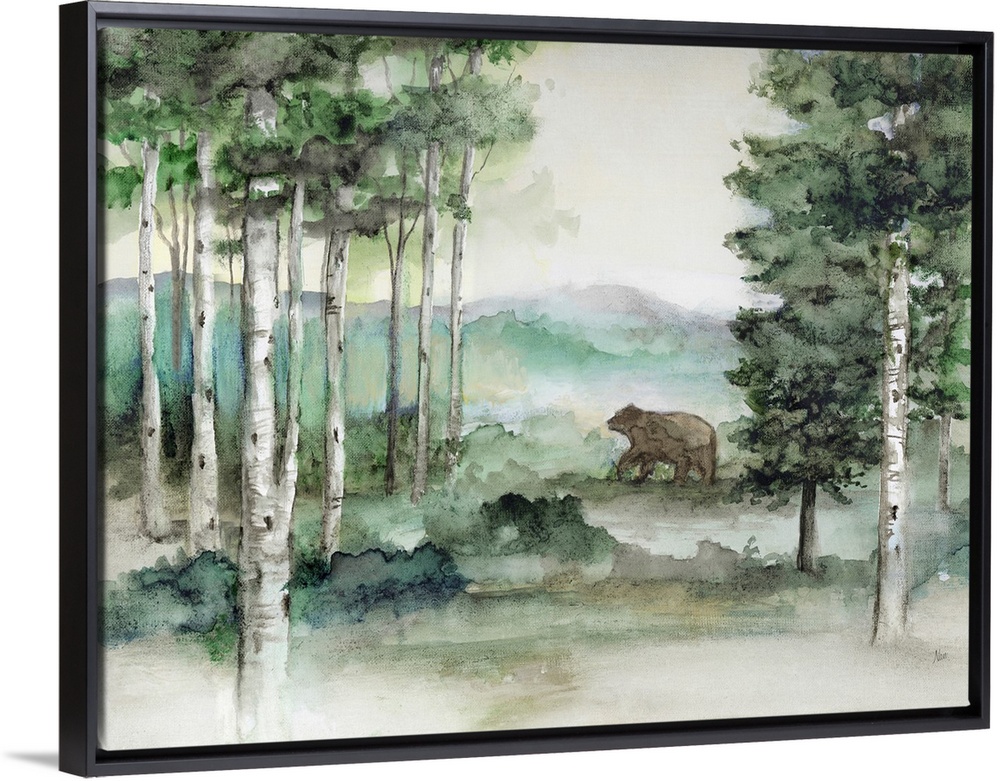 Art Nan Art Cabin Wall Art Decorative Art Green Wall Art Landscapes Painting Watercolor Wildlife Bear