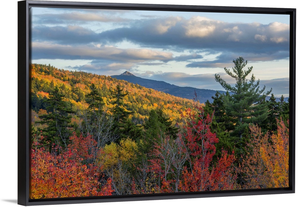 <p>Brightly colored forests in autumn in New Hampshire's Kancamagus Pass.</p>