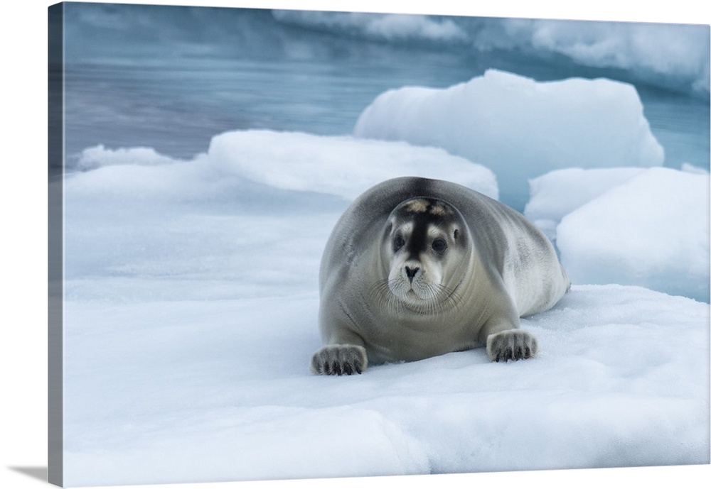 <p>Bearded Seal laying on pack ice, Spitsbergen Island, Svalbard Archipelago, Arctic, Norway, Scandinavia</p>