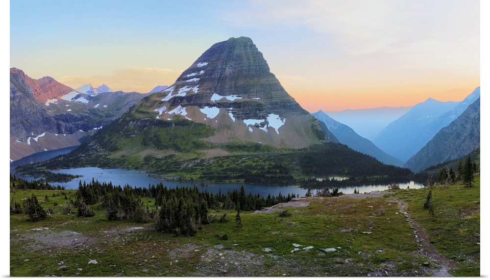 <p>Bearhat Mountain behind Hidden Lake at sunset. Glacier National Park. Montana. USA.</p>