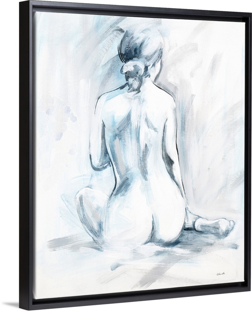<p>Cool toned abstract painting of the backside of a naked woman with her hair tied up in a low ponytail.</p>