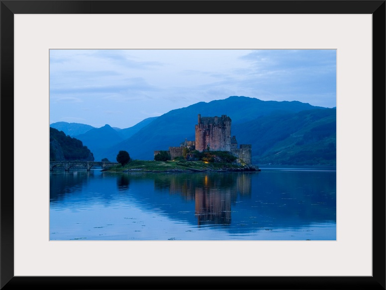 <p>Beautiful Eileen Donan Castle in Western Dornie in Highlands os Scotland the most photographed castle in the world at night with reflections on still beautiful waters</p>