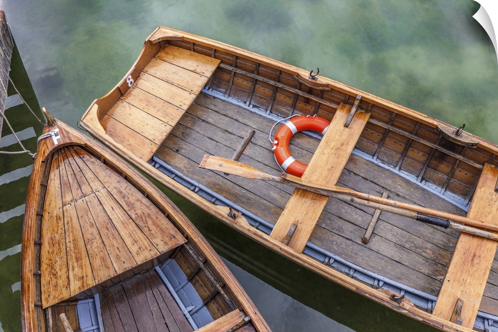 <p>Beautiful old wooden rowing boats on Lake Braies, South Tyrol, Italy.</p>