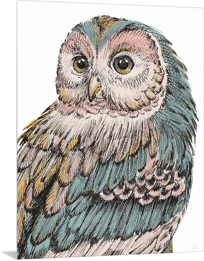 <p>Beautiful illustration of an owl using pastel colors and gold accents.</p>