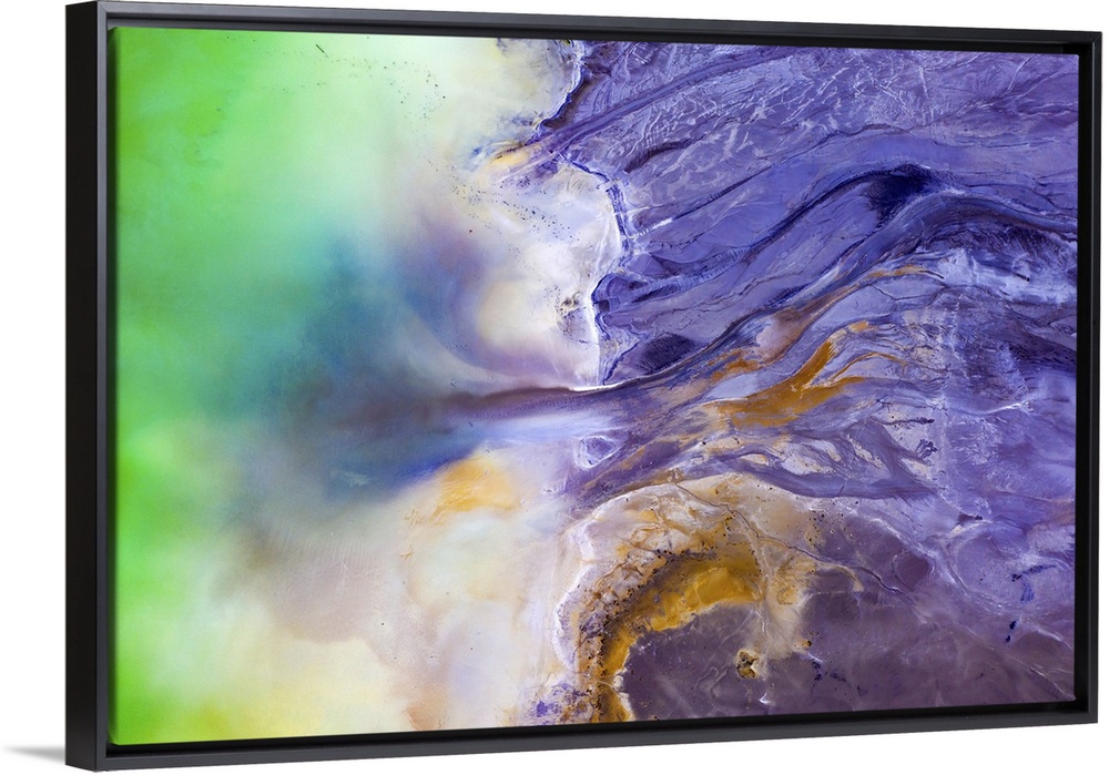 <p>Beautiful aerial pattern of colorful water and mud, shot with a drone located at Geamana, Romania, a formerly village that was covered with toxic waste from a mining operation nearby.</p>
