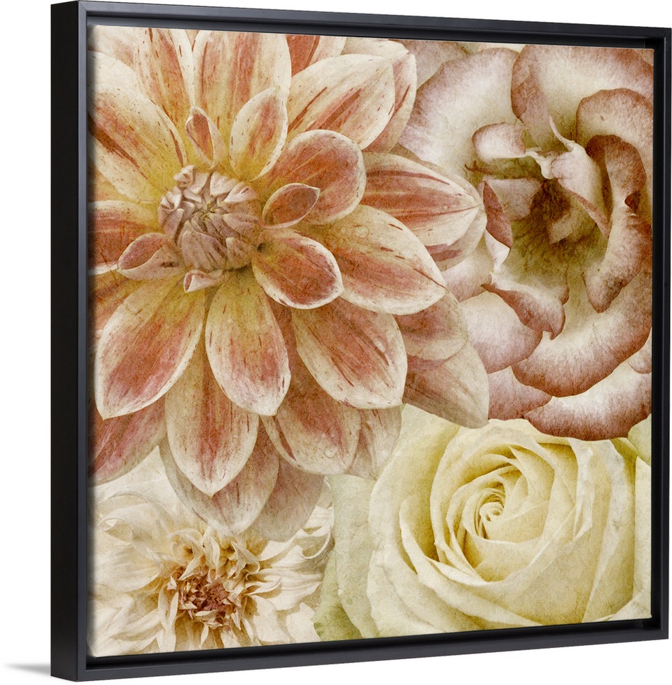 <p>Flowers in shades of pink and yellow fill this decorative art edge to edge.</p>