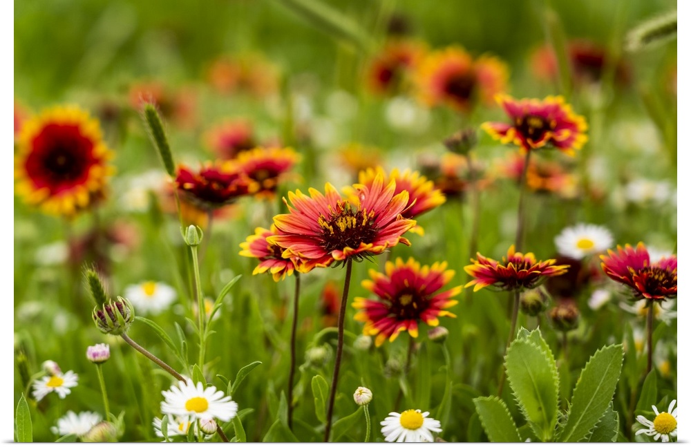 <p>Beautiful red and white wildflowers growing in a field of grass; Oklahoma, United States of America.</p>