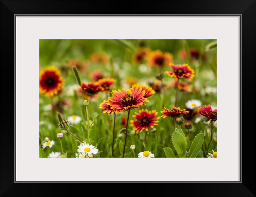 <p>Beautiful red and white wildflowers growing in a field of grass; Oklahoma, United States of America.</p>