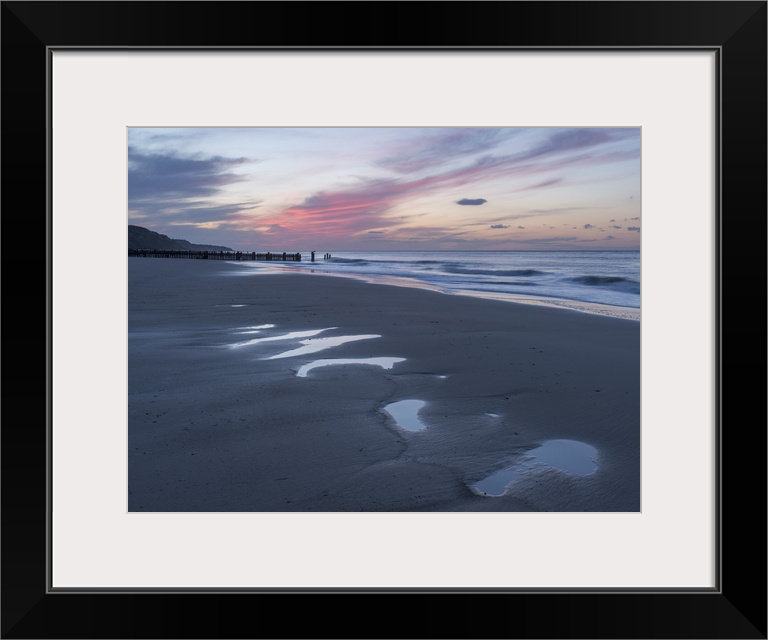 <p>Beautiful sunset colours over the beach at low tide at Mundesley, Norfolk, England</p>