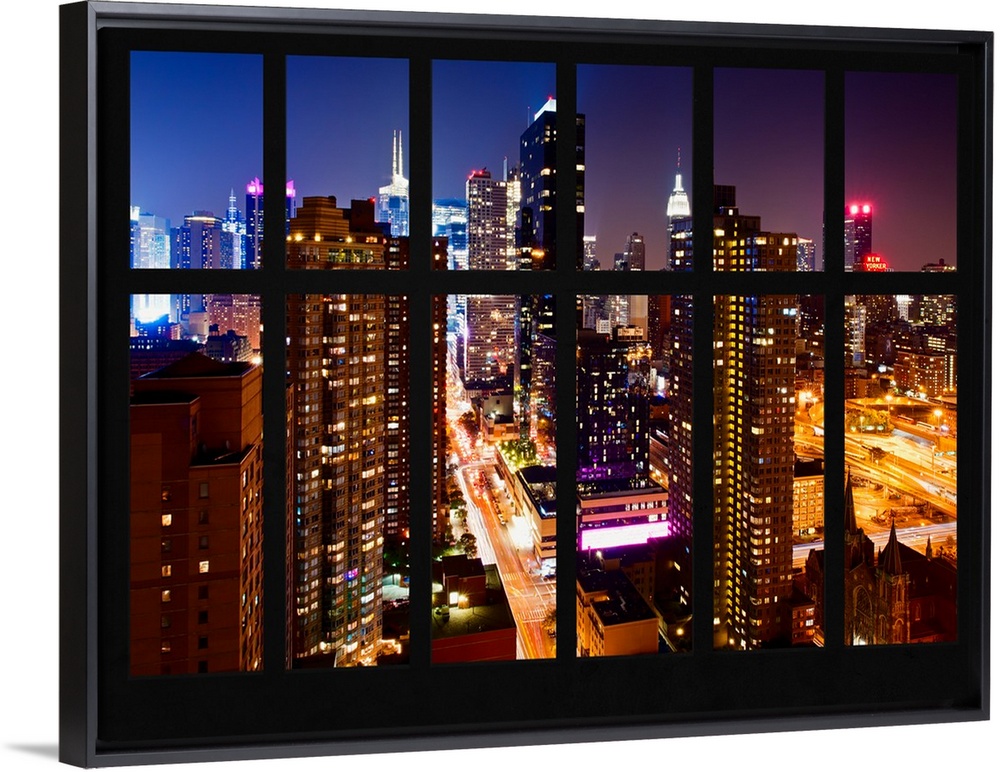 <p>Artistic photograph New York city at night as if viewed from a window.</p>