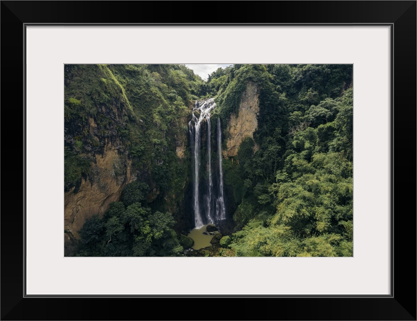 <p>Beautiful waterfalls falling from a lush cliff at air Terjun Bossolo, south Sulawesi, Indonesia. Jeneponto regency, south Sulawesi, Indonesia.</p>