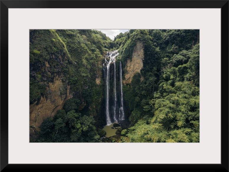 <p>Beautiful waterfalls falling from a lush cliff at air Terjun Bossolo, south Sulawesi, Indonesia. Jeneponto regency, south Sulawesi, Indonesia.</p>