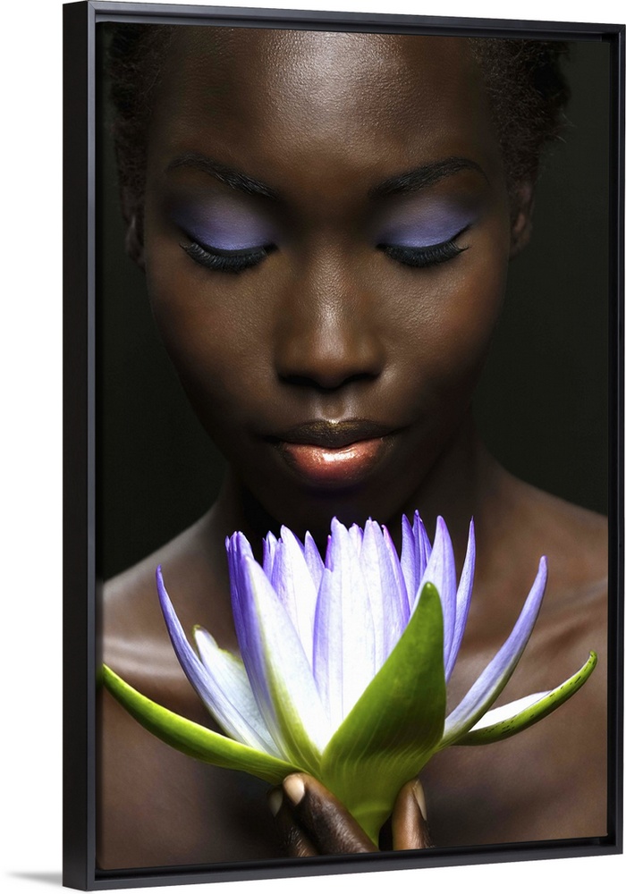 <p>Afro-American woman with purple lotus flower</p>