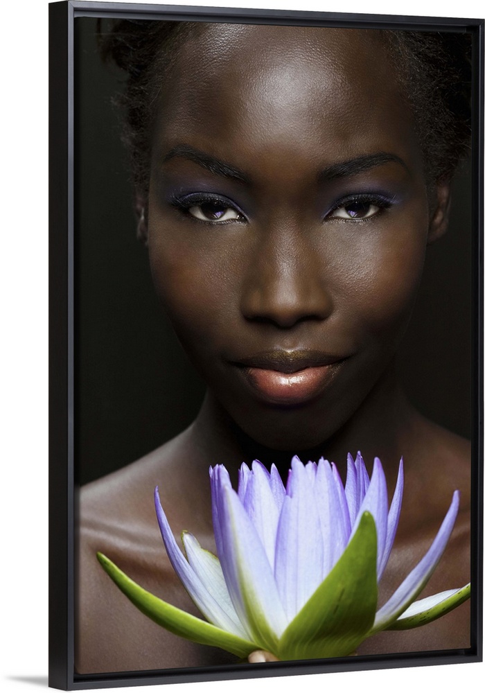 <p>Afro-American woman with purple lotus flower</p>