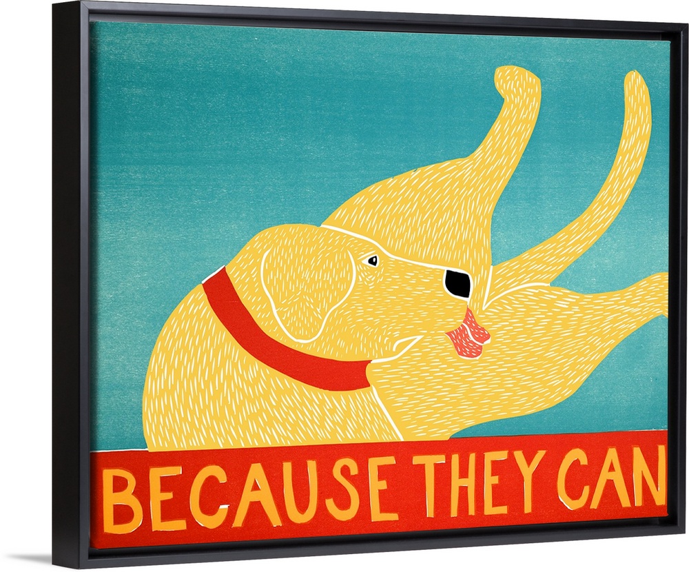 <p>Funny illustration of a yellow lab licking its body parts with the phrase "Because They Can" written on the bottom.</p>