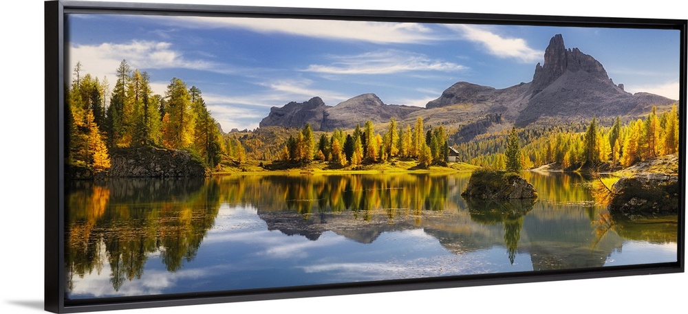 <p>Becco di Mezzodi reflected in Lago di Federa, Lago di Federa, Ampezzaner Dolomites, Dolomites, UNESCO World Natural Heritage Dolomites, Veneto, Italy. Dolomites, Lago di Federa, Italy.</p>