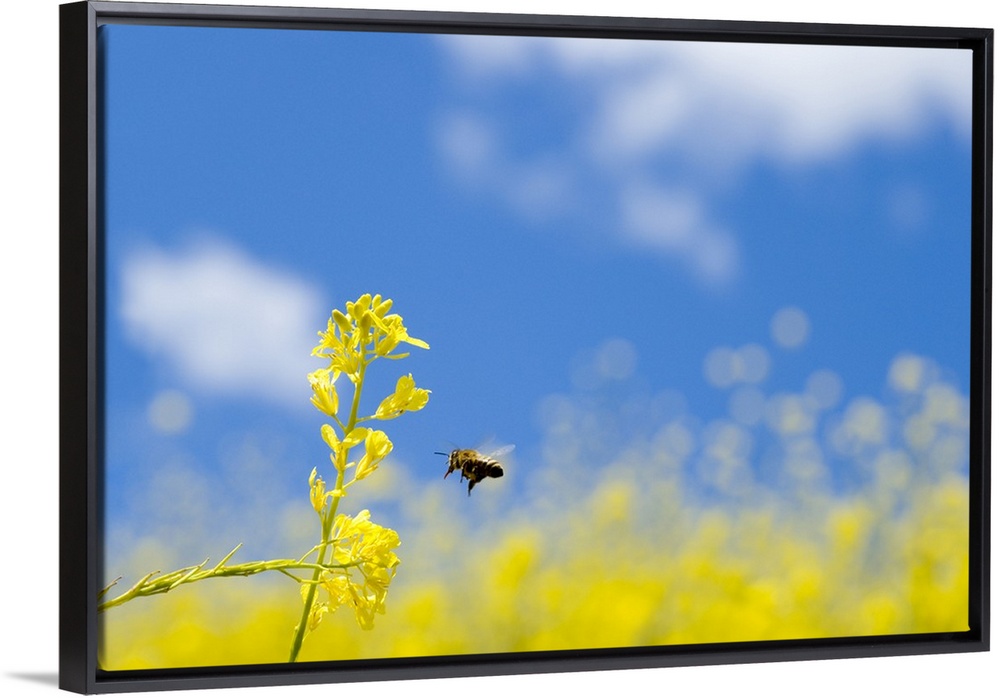 <p>Bee and field mustard (Brassica campestris), Lafayette Reservoir, Lafayette, California.</p>
