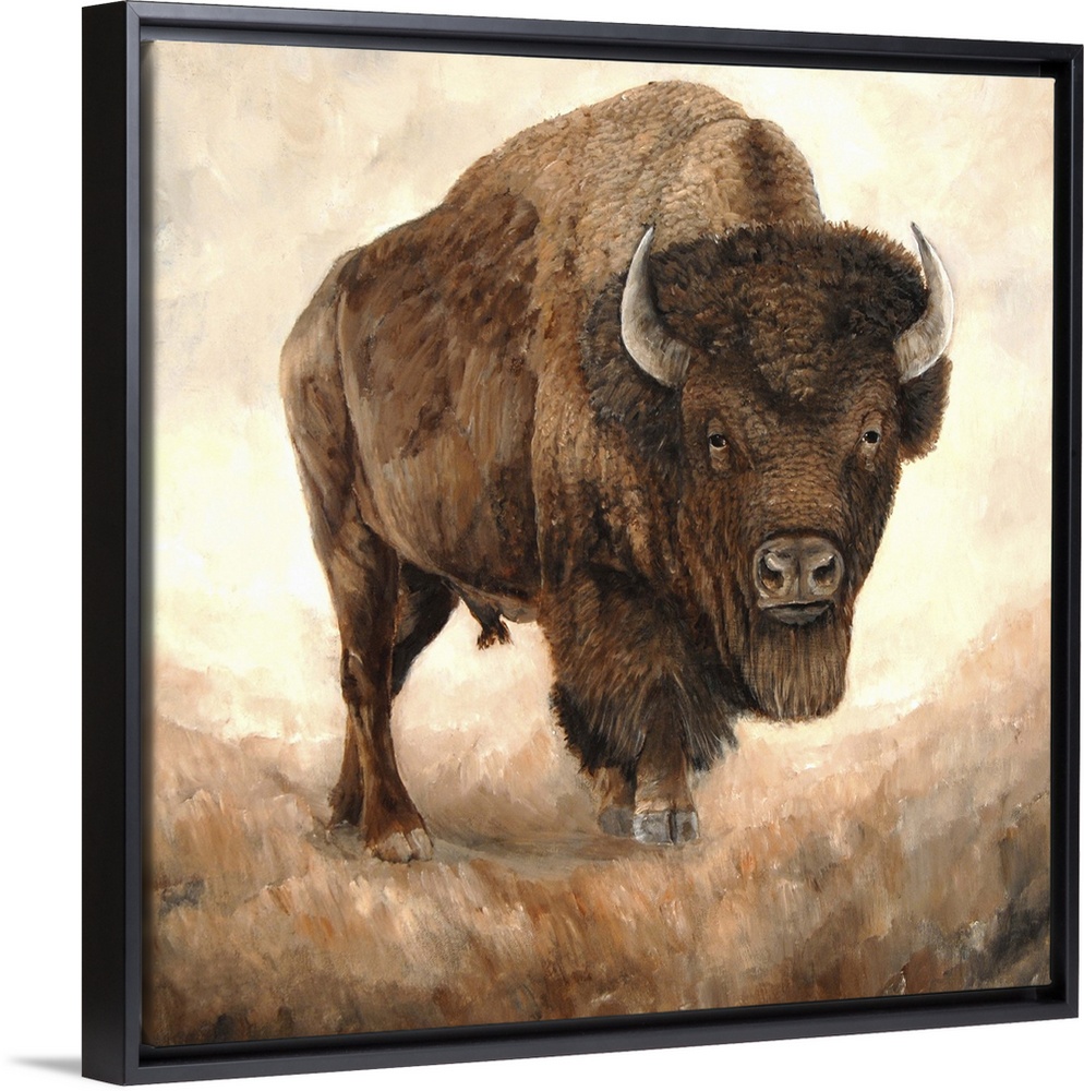 <p>Contemporary painting of a majestic American bison standing in a prairie.</p>