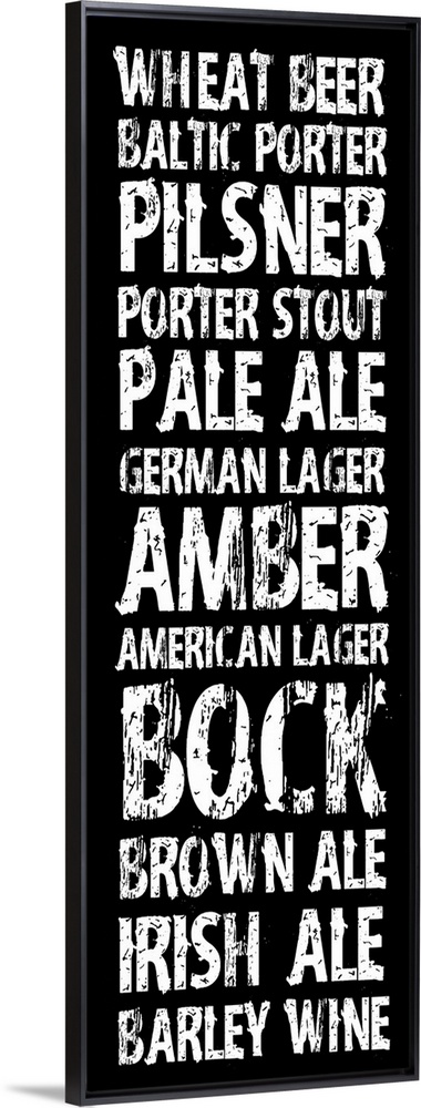 <p>Typography art in vertical orientation listing different kinds of beer, in a grungy urban style of text.</p>