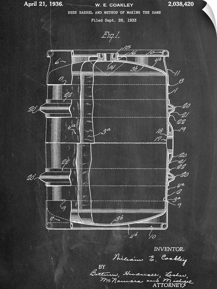 Art Blueprints Cole Borders Decorative Art Drawing Food and Drink Drinks Beer Man Cave Wall Art