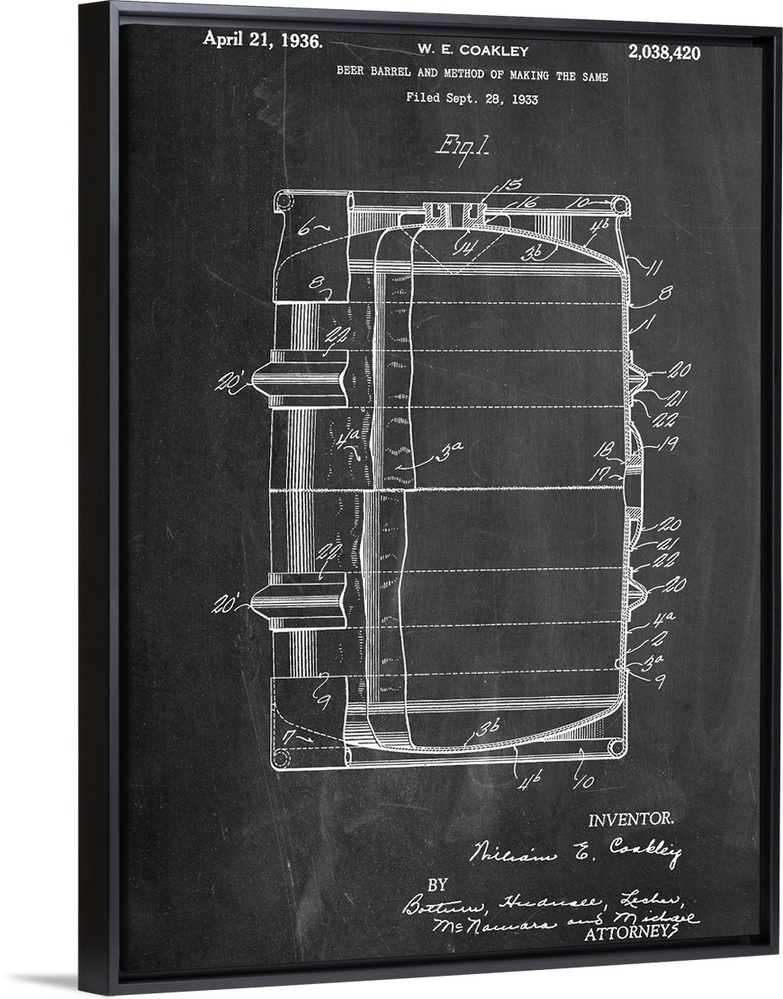 Art Blueprints Cole Borders Decorative Art Drawing Food and Drink Drinks Beer Man Cave Wall Art