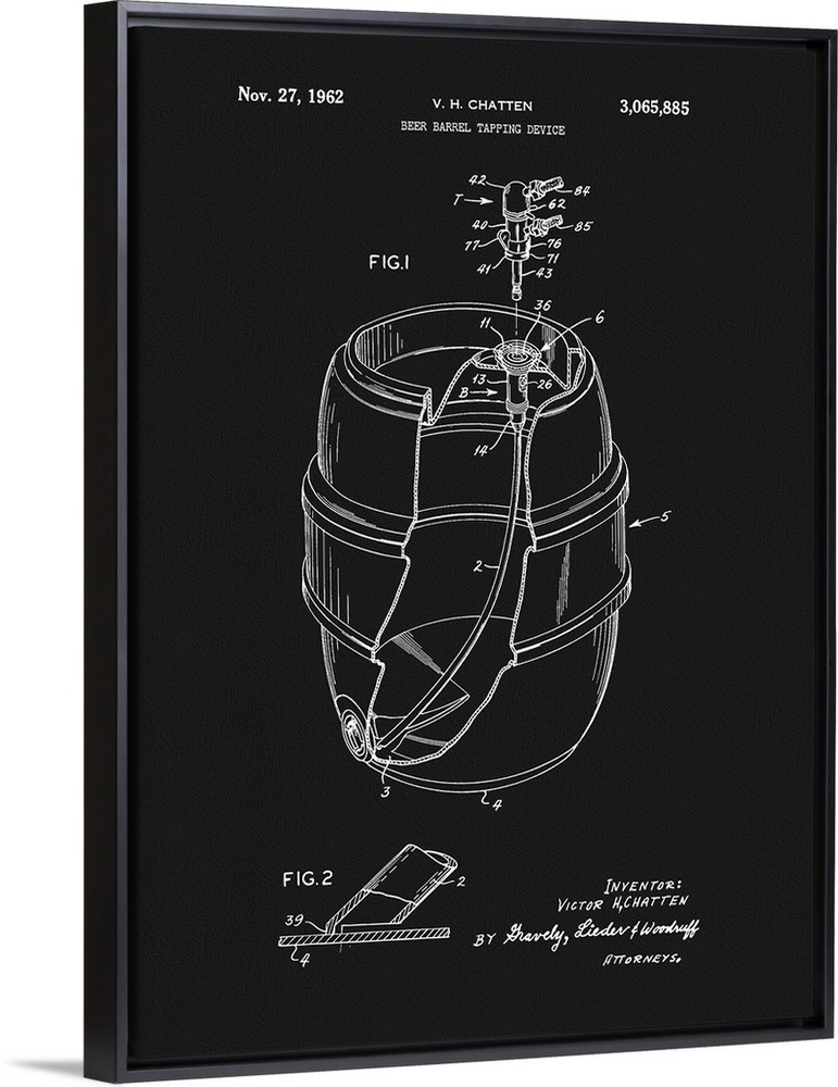 <p>Black and white blueprint of the beer barrel, patented November 27, 1962.</p>