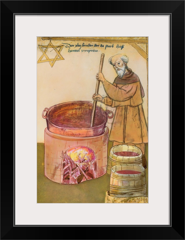 <p>Germany: Medieval Beer Brewer, in monk's garb. Colored manuscript illumination from Twelve Brother Foundation source book. Nuremberg.</p>