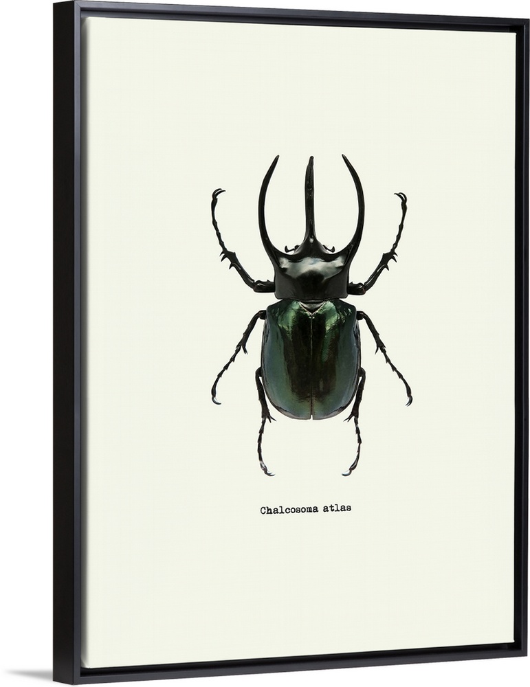 <p>Image of a black beetle with the scientific name below it, Chalcosoma Atlas.</p>