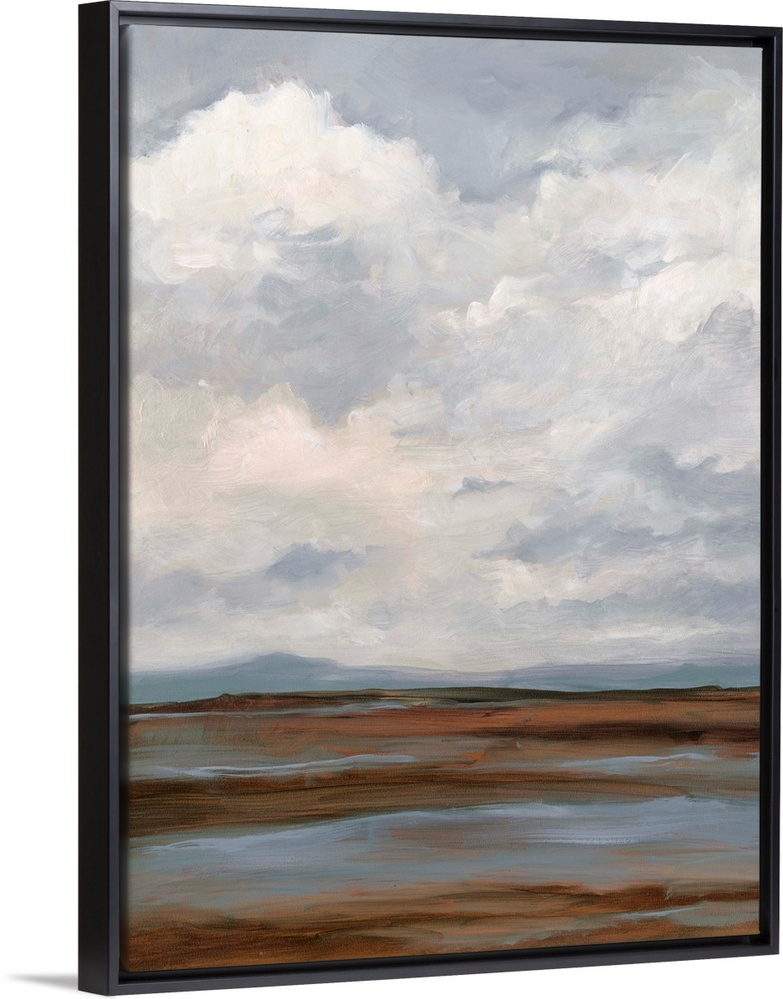 <p>Contemporary landscape painting with a sky filled with clouds.</p>
