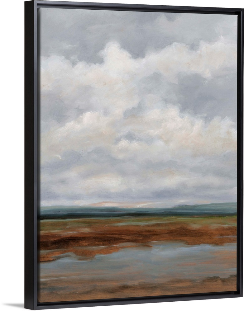 <p>Contemporary landscape painting with a sky filled with clouds.</p>