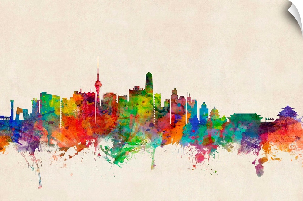 <p>Contemporary piece of artwork of the Beijing skyline made of colorful paint splashes.</p>